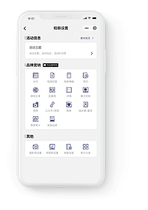 微信小程序为一拍即传管理端,可完成创建相册、设置相册名称、活动地点、横幅加载页,同时可添加摄影师、修图师等。设置相册信息。使用小程序更方便。